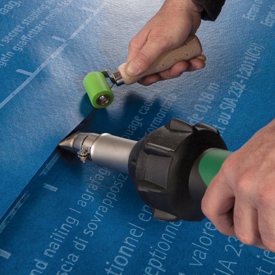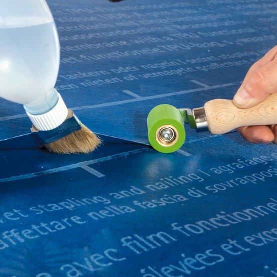Praktisches Werkzeug zum gleichmäßigen Andrücken der Verschweißnaht zweier SOLITEX WELDANO Bahnen untereinander.