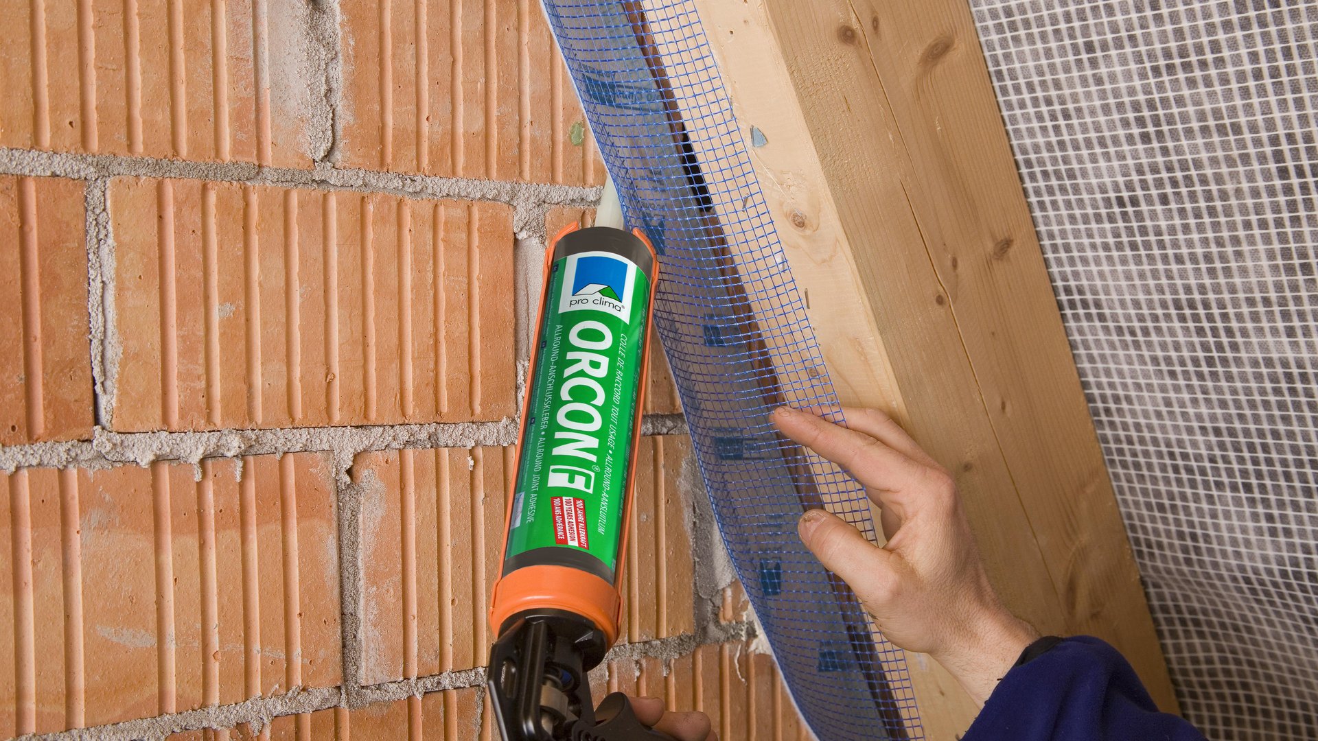 Vlies mit ORCON F oder ORCON CLASSIC punktuell am Mauerwerk fixieren.